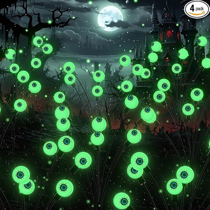 - 【Perfect Outdoor Halloween Decorations】 The Halloween must haves scary eyeballs Halloween solar lights are perfect for decorating Halloween parties, gardens, yards, lawns, front porches, and flower pots. Present it as a Halloween gift to your family, neighbors, and friends and enjoy these fun Halloween decorations together!