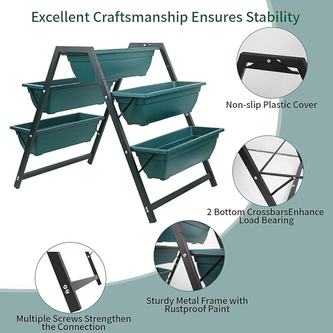 Generic Raised Garden Planter Bed, 5 Tiered Boxes, Vertical Stand for Herbs, Flowers, Vegetables, 65x91x79cm, Green, Green/Black