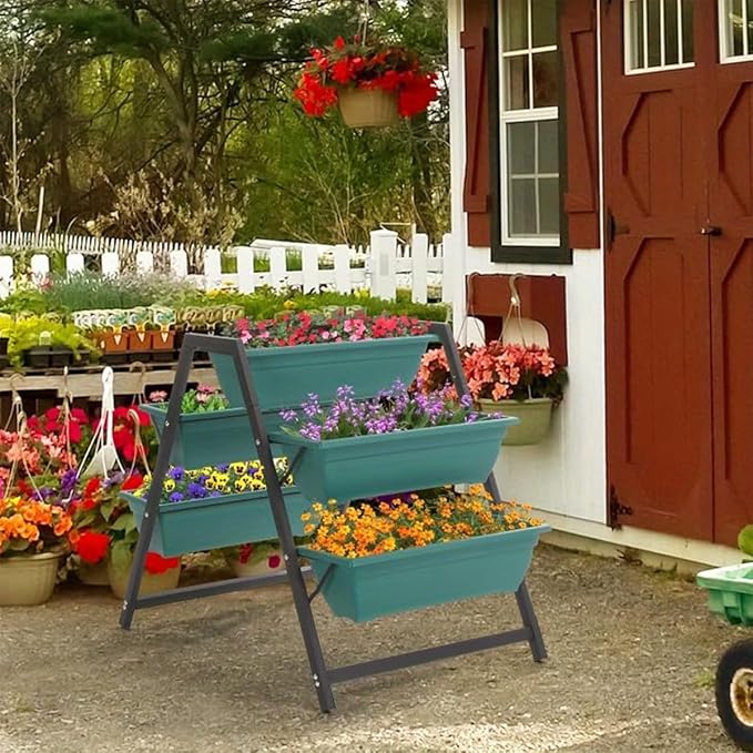 - 【Raised Garden Planter Bed】The 5-layer vertical garden planter can utilize the space on each layer to plant different plants, such as herbs, flowers, vegetables and fruits. The unfoldable stepped planting rack allows all plants to get enough sunlight to promote their growth.