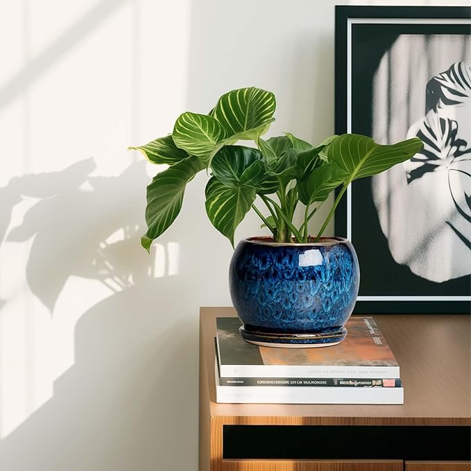 - Modern Design: Our blue ceramic pots for plants features a beautiful and smooth peacock blue glaze design, suitable for decorating your home, garden, patio, balcony, office and more