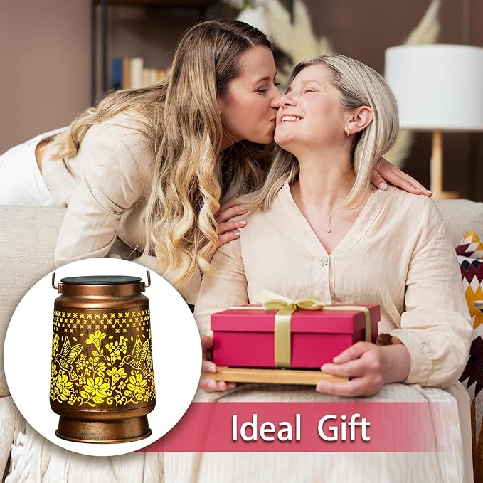 - Graceful Decorative & Color Changing Design: The retro appearance, with gold copper color and hollow out metal veneer, the solar outdoor lanterns casts bright and warm light in darkness, and switch between different light colors,accompanied by gorgeous and graceful hummingbird patterns, adding a beautiful atmosphere to the surrounding environment.