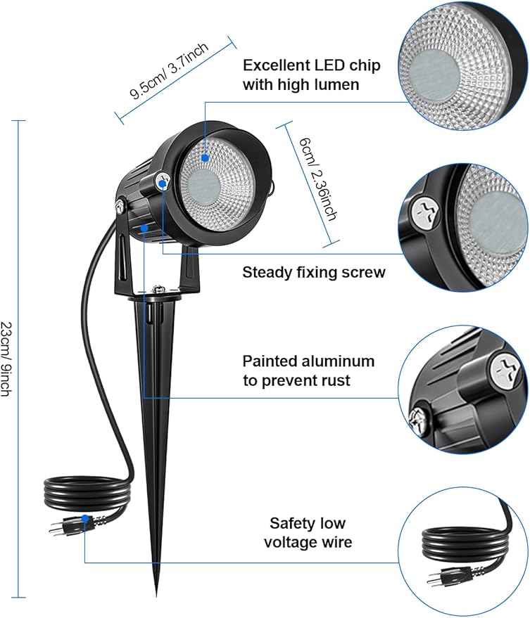 - 【Easy installation & Plug and Play】Our RGBW outdoor spotlight is plug and play, without power switch and hard wiring, which can be directly connected to your household power supply (AC100-240V). If you want to mount the outdoor light on the wall, the landscape light has three holes on the back to mount directly to the wall or fence