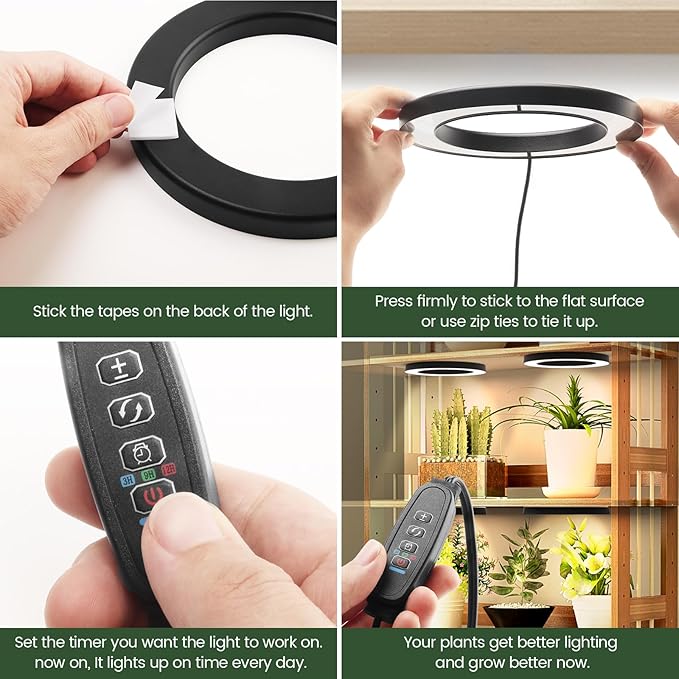 - Easy Installation with total Mounting Kits for Plant Shelf or Under Cabinet - Mosthink grow light set comes with 6 double-sided tapes and 4 ties. Fits for various surfaces . The power cord is 72 inches long for easy using in office,home,plant shelves or indoor greenhouse