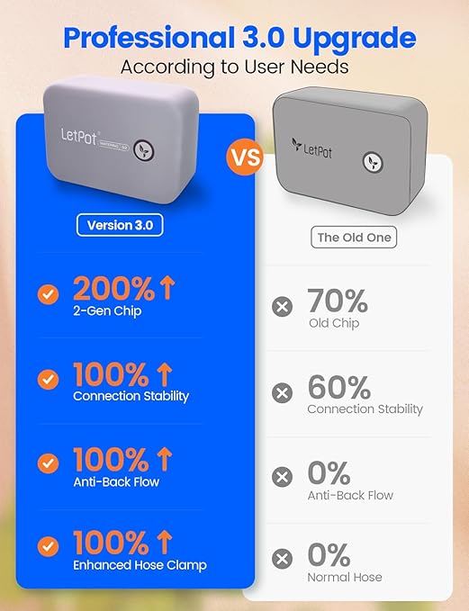 - 🥇 [New Upgrades for Superior Performance]: The LetPot automatic watering system now includes an anti-backflow valve to prevent the siphon effect, enhancing watering efficiency. Its upgraded 2.0 chip ensures faster and more stable connectivity, while the LetPot app supports up to 5 simultaneous watering tasks for maximum flexibility. Combined with an advanced spiral lock, it maintains better water pressure retention, ensuring consistent and reliable irrigation every time.