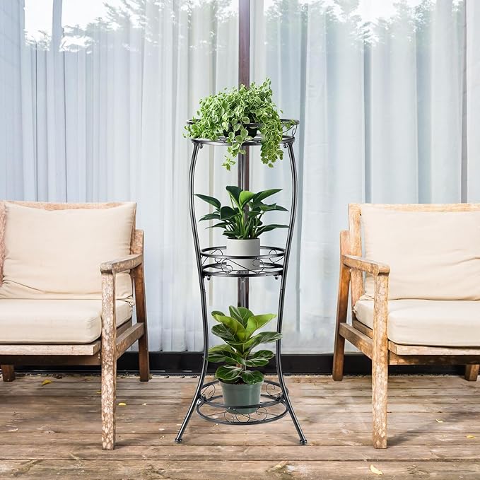 Metal Plant Stand Shelf Rack Indoor Outdoor Multiple Black 3 Tier Tall Corner Flower Pot Holder Stands Tiered Wrought Iron Planter Shelves for Patio Living Room Balcony Office (Black)