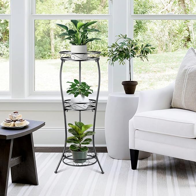 - Vase Design : Our featuring wrought iron-inspired trays and curved lines, this plant stand boasts an elegant and minimalist design. Black Metal Plant Stand complements all home decor styles and transforms your home or garden into a bright and modern space