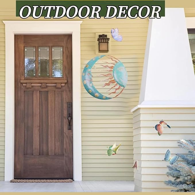 - PREMIUM METAL QUALITY: Crafted with high-quality metal materials,this Metal Sun Wall Decor is built to last.It is durable,weather-resistant,waterproof and resistant to fading or rusting.Enjoy its long-lasting beauty and reliability,even in various weather conditions.