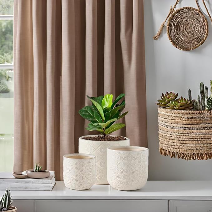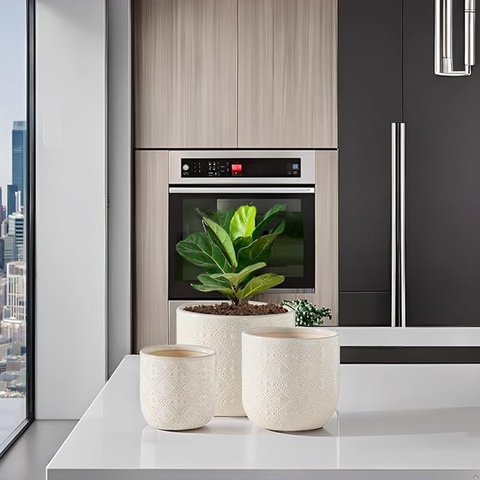 - Plant Pots Ceramic: 6.5+5.3+4 inch flower pots with drainage holes and saucer , which can be used to collect excess water without leakage, preventing bottom water from corroding plant roots.