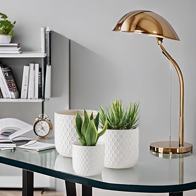 Docrin Plant Pots Indoor with Drainage: 6.4+5.3+4 Inch Ceramic Flower Pots for Plants - Set of 3 Modern Decorative Planters for House/Office/Gift - White Honeycomb