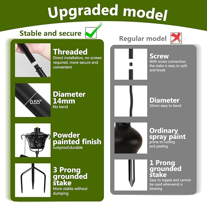 - 【3-Prong Stake】Improved the grounded stakes to 3-prong stake, which is more stable. No bends and breaks.