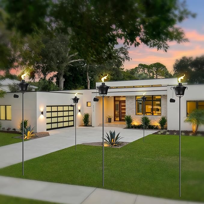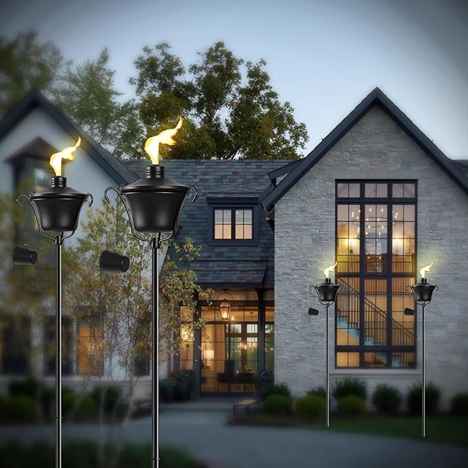 - 【Set of 4】Came with 4 citronella torches, perfect decor for your home, yard, garden, lawn, terrace, backyard, patio, and outdoor use.