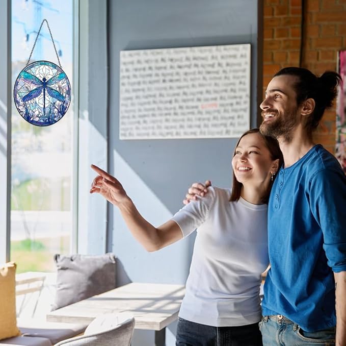 - 【Exquisite Festival Gift Memorial】The handmade suncatcher for hanging stained glass is a lovely gift for your mother, daughter, friends, family, lover or nature enthusiast, can be decor glass doors, kitchen windows, upstairs windows, round top windows, front windows, bedroom windows, kitchen doors, our dragonfly room decor would be a great embellishment to your home. Suitable for Mother's Day gifts, Christmas gifts, Thanksgiving Day gifts, Birthday gifts, Easter gifts.