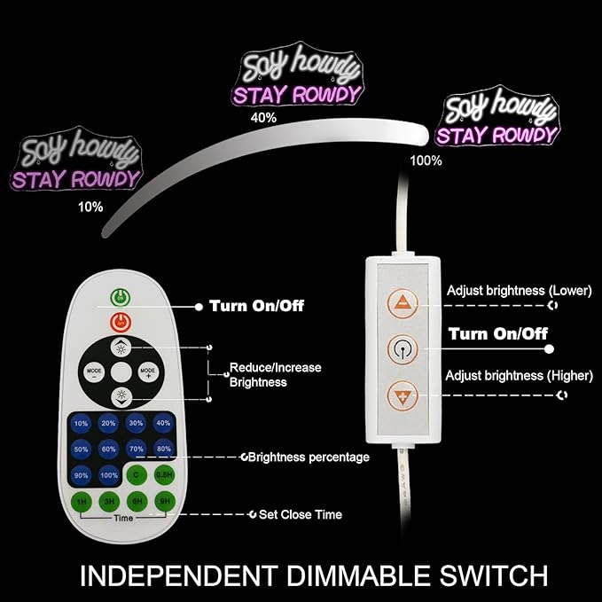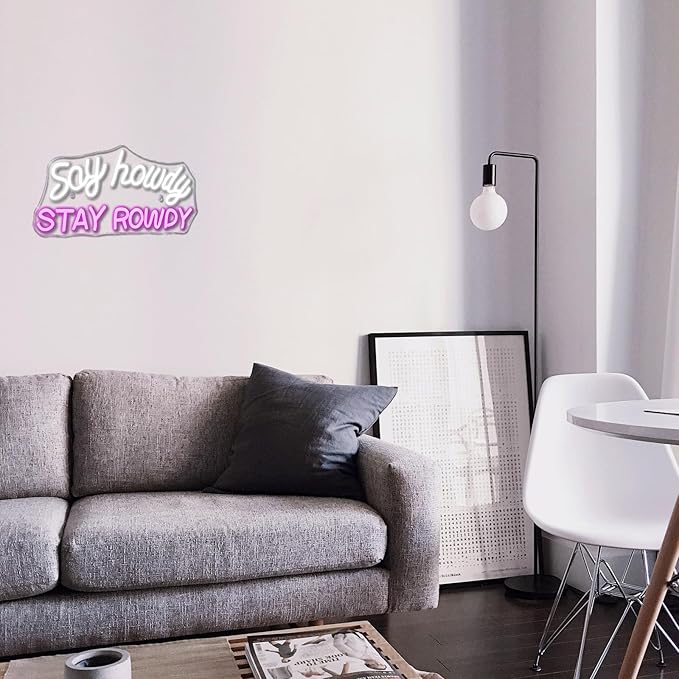 Say Howdy Stay Rowdy Neon Sign Wall Decor, Dimmable Neon Light For Man Cave Pub Beer Bar Bedroom Recreation Room Gift