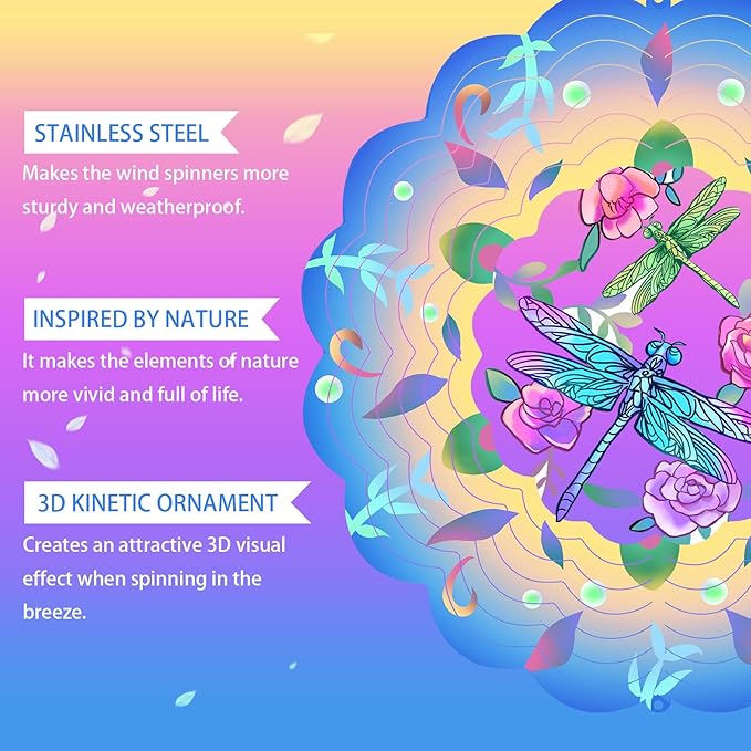 - 【Perfect Gift Idea】These dragonflies wind spinner can not only be used as outdoor patio parties or home decorations but also as Mother's Day, Father's Day, Thanksgiving, Christmas, birthday, and housewarming gifts for your mom, grandmother, wife, and other family members, friends or yourself.