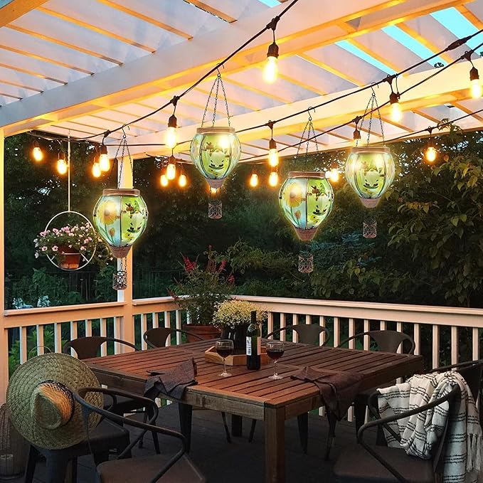 - 【WIDELY USED】Brightly colored solar powered hot air balloon flickering flame hanging garden light is a great outdoor or indoor decoration, this hot air balloon lantern comes with metal "S" hooks, it can be easily hung anywhere, such as a balcony, porch, pergola, tree, or shepherd's hook. In addition, the hot air balloon has rich symbolism, representing courage, hope, dream, romantic love, it is a perfect gift for friends and family!