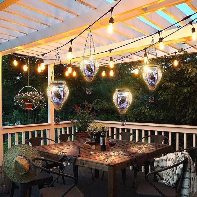 - 【IP44 Waterproof & Durable】Solar lanterns outdoor waterproof IP44 with durable material, designed to withstand sunny days, rainy nights, and small snowy days. you can put it anywhere you want to decorate, hanging or place outdoor and easy to use.