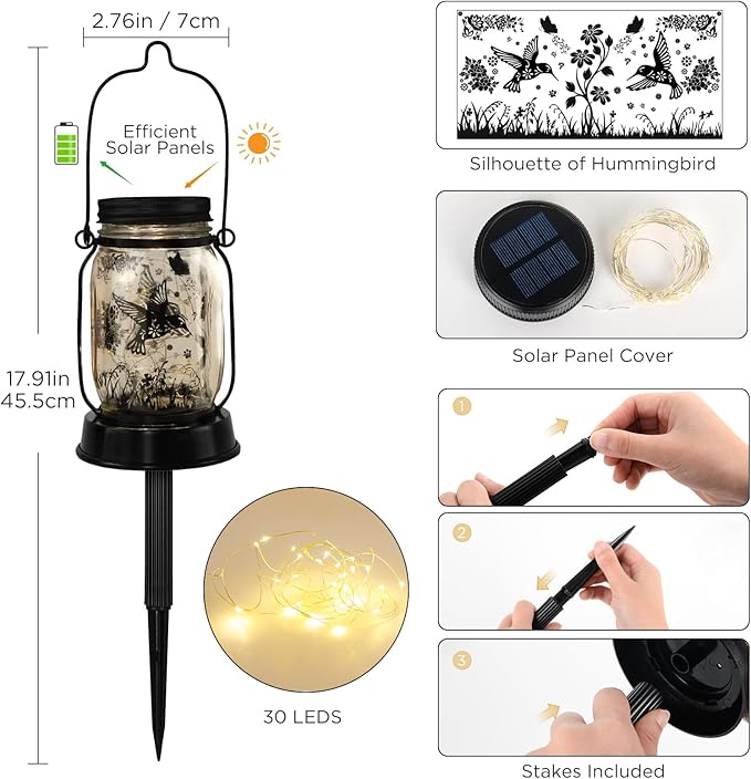 - 3-IN-1 SOLAR LANTERN FOR ANY SPACE: This enchanting solar garden lantern offers versatility with lawn, tabletop, and hanging mount options! Effortlessly hang it wherever you please. Looking to add a touch of whimsy to your life? Suspend this lantern within your home, transforming it into a picturesque scene that brings good fortune. It's ideally suited for gardens, yards, balconies, windowsills, and corridors, effortlessly enhancing bedrooms, living spaces, windows, and gardens alike.