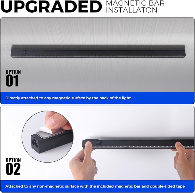 - 4-in-1 Installation: This indoor grow lights with magnetic desigh, which can be directly adsorbed to the metal surface.As well as light light clips, ties, magnetic bars with double-sided tape. Easy installation and time saving
