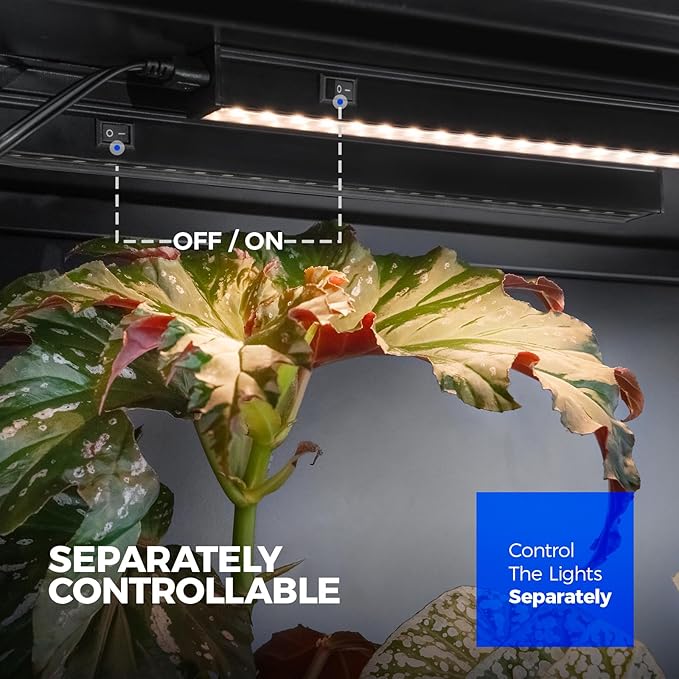 - Separately Controllable: Each led grow light strip has an on/off switch on the surface of the housing, enabling control of the lights separately or together according to the PPFD that plants need, catering to personalized needs