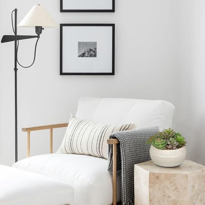 - Premium Material Design: Features high-quality polyethylene artificial succulents rooted in a sturdy ceramic pot, topped with decorative pebbles for an authentic touch. The ceramic base ensures durability while the pebbles add natural texture