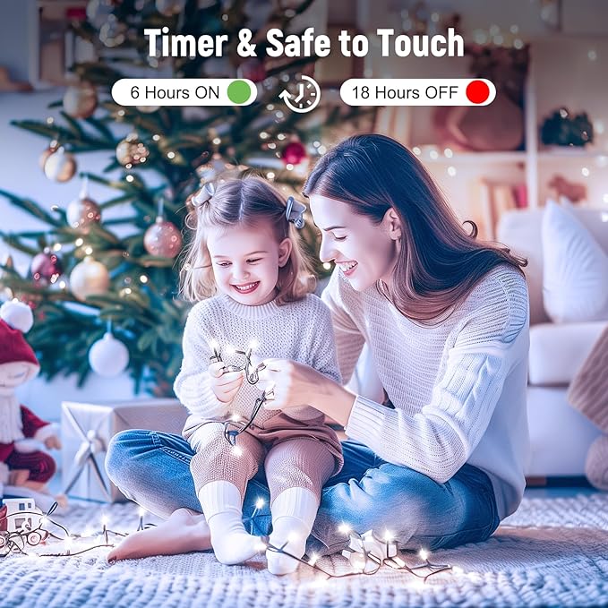 - 【8 Lighting Modes&Timer Function】Waves, Combination, Fading, Fireflies, Chasing, Twinkle, Fading slowly, and Steady-on. Each mode is so different and having that option is great as each night mode is different. Wine night, beer night, music night, party night. Different modes are controlled by the button on the plug. The Christmas lights also timing function, which automatically turns on for 6 hours and turns off for 18 hours.