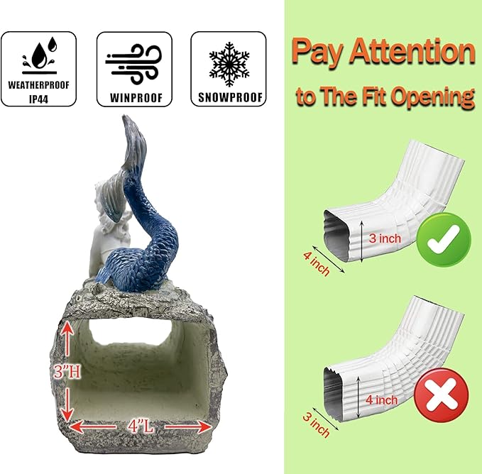 Mermaid Statue Garden Rain Downspout Diverter, Decorative Gutter Extension, Splash Block, Eco-Friendly Resin Downspout Extension,Perfect Rain Diverter for 3"x4" Downspouts (10.6 in)