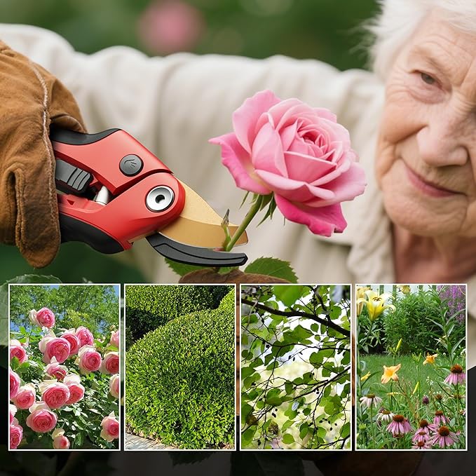 - ✨ Titanium-coated blades, anti-stick, smoother cutting: Designed as pruning shears for gardening, the titanium-coated upper blade and the Easy-Fron coating on the lower blade prevent sap from sticking, ensuring smooth cutting without any jams, eliminating the need for frequent cleaning—making them reliable garden pruners for everyday use.