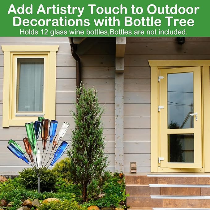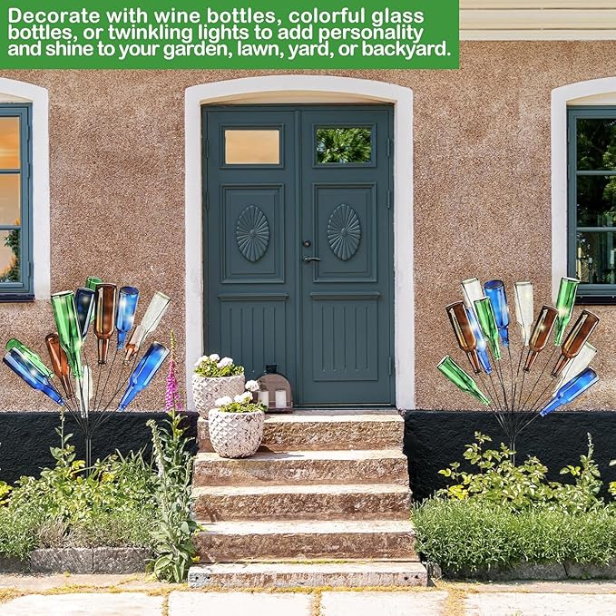 - Package Contents: Enhance the charm of your garden with this sophisticated outdoor metal wine bottle holder, perfectly crafted to accent any landscape. Each bottle holder features 12 elegantly designed branches to display your empty wine bottles (bottles not included), adding a touch of sophistication and vintage flair to your outdoor oasis