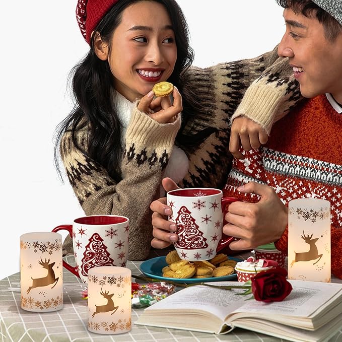 - Christmas Decorations: Gold deer Christmas tree LED candle brightens up every corner of your home, from the cozy living room to the bedroom, and even gracing the your dining table. Its flameless 3D wick keeps safety, allowing you to decorate with ease, and infusing every corner of your home with the pure joy and heartwarming of Christmas