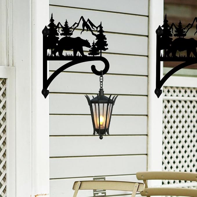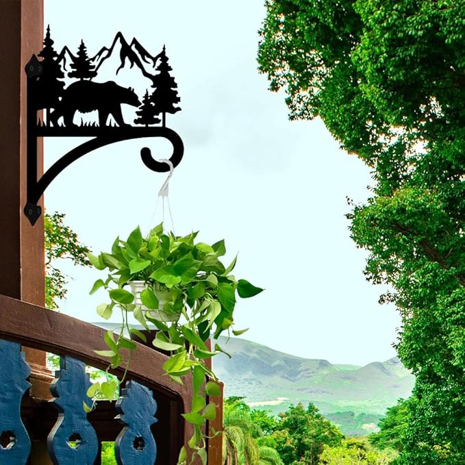 peacoblue Iron Plant Hanger Hook for Outdoor Indoor Hanging Plant Flower Fern Pot Lantern Bird Feeder,12"x15" Weather Resistant Metal Wall Holder for Porch Garden Farmhouse(Forest Bear and Mountain)