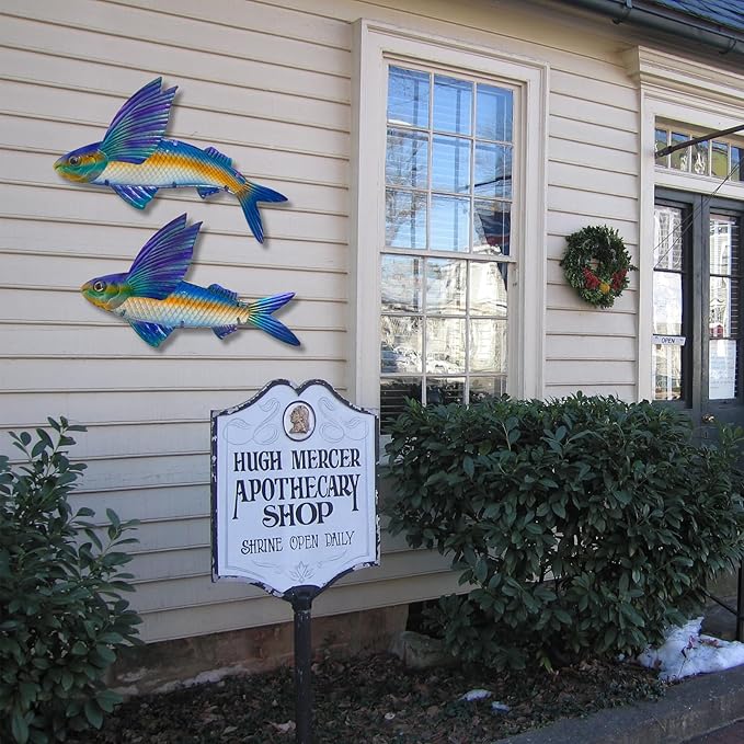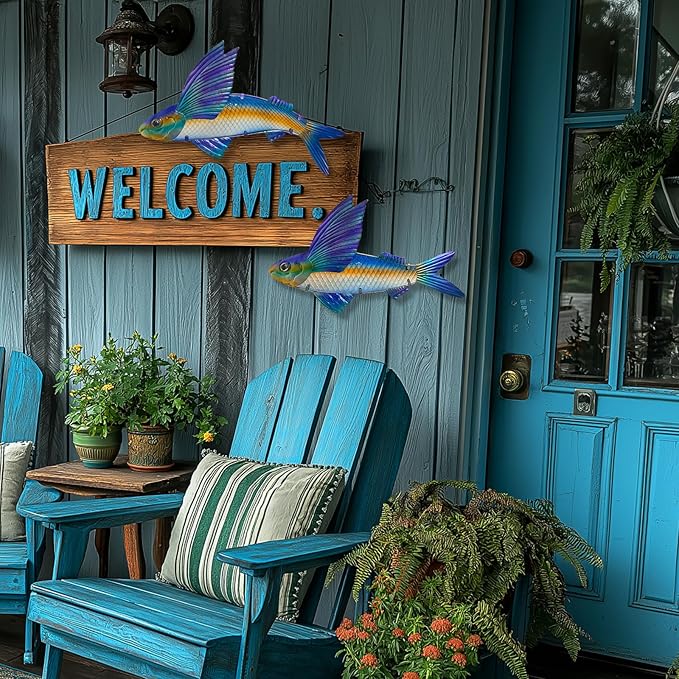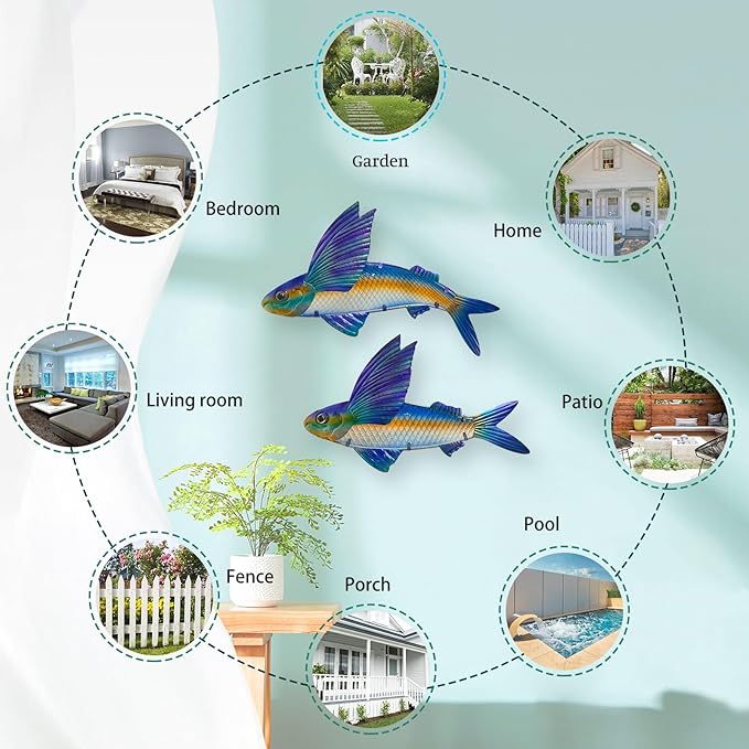 - โจใ๐ซ๐๐๐๐๐๐๐๐ ๐ผ๐๐๐๐๐ ๐ใ๏ผYou will get included 2 pieces of flying fish decoration - Measure 15 inches. The vivid metal fish wall decor matches are perfect for any decor style and can be displayed in the bedroom, living room, office, study, baby room, kitchen, yard, porch, patio, garden, and more