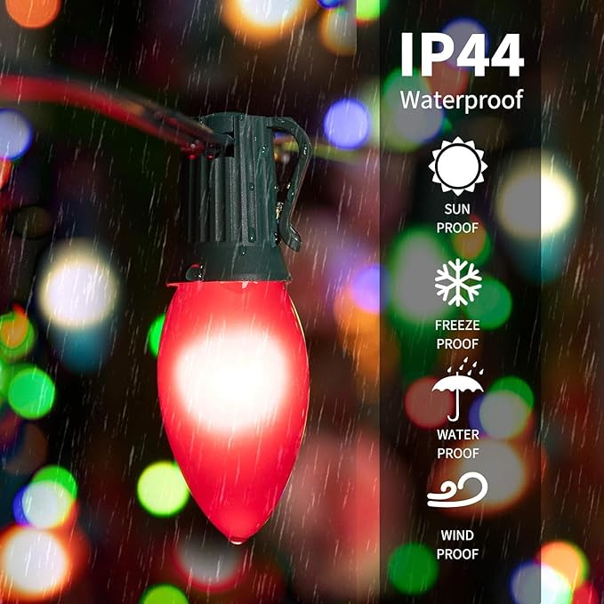 Vintage C9 Multicolor Christmas Lights Outdoor, 100 FT C9 String Lights for Christmas Decorations Holiday Party Indoor Room Outdoor Roofline Backyard Garden Patio Cafe Home Decoration, E17 Base