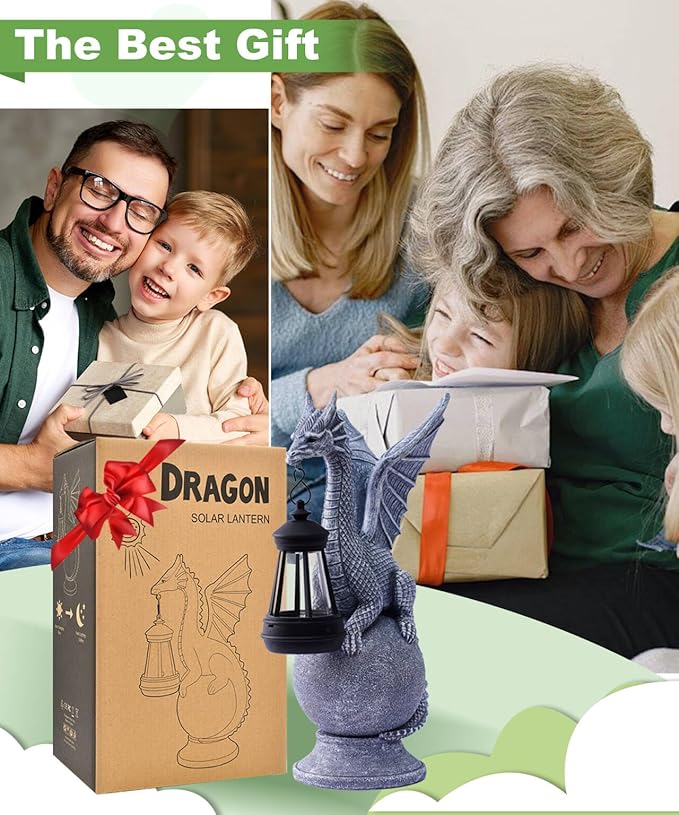 Solar Dragon Garden Statue for Outdoor Decor: Outside Sculpture Ornament for Yard Lawn Balcony Patio Porch- Unique Birthday Gift for Lover Mom Women Grandma