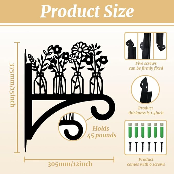 - ⚘Easy to Install: The plant hanger installation is a breeze. It packed with 6 screws for 5 holes so you just need screw them into the place where want to install it