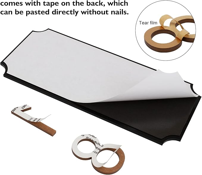 - Easy Assembly and Install - Tear off the tape on the back of the numbers, stick them on the plaque, then tear off the strong tape on the back of the plaque and stick the plaque where you need it to be done. Note: The numbers will be difficult to separate once they are attached to the plaque, please proceed with caution.