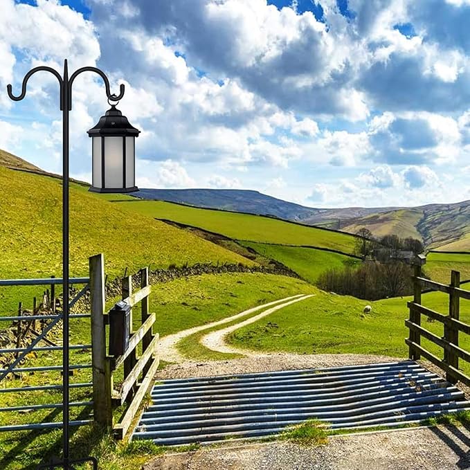 - 【UPGRADE DOUBLE HOOKS DESIGN】The shepherds hooks for outdoor are designed with two strong and durable arms in a classic curved design that allows you to hang bird feeder, Plant Baskets, Solar Light Lanterns, Wind Chime and so on. At the same time, the top pole in the middle of the two hooks can prevent your lovely bird from trapping into the gap, far away from danger.