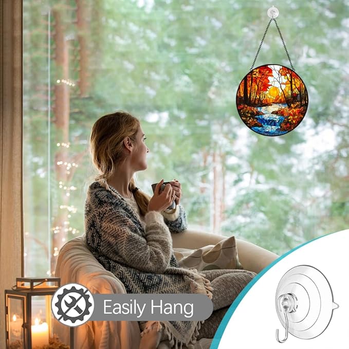 - Indoor Outdoor Decor Festival Gift: Creative painted glass hangings add a colorful glow to your life.Window hanging fit for indoor decor for bedroom, bathroom, kitchen, door, cafe, office, classroom, porch, balcony, etc. Also lovely outdoor decor for garden, patio, party and RV camping. Also it makes an ideal gift for mother, wife, grandmother, teacher, friend and nature lover, expressing love and appreciation for any holiday occasion