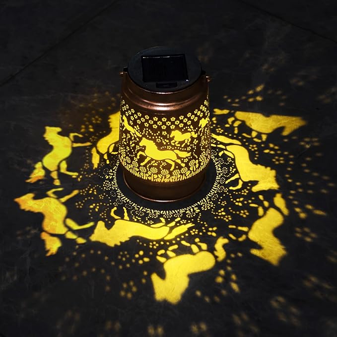 - Perfect Garden Decorations: Kyoryuger solar lantern can project unique and beautiful patterns in a dim environment, creating a gorgeous and warm atmosphere to bring life and fun to your garden and attract your family or friends. The unique hollow out design and beautiful antique bronze color give it an artistic touch, perfect for decorating gardens, backyards, corners, Outside, sidewalks and many other scenes.