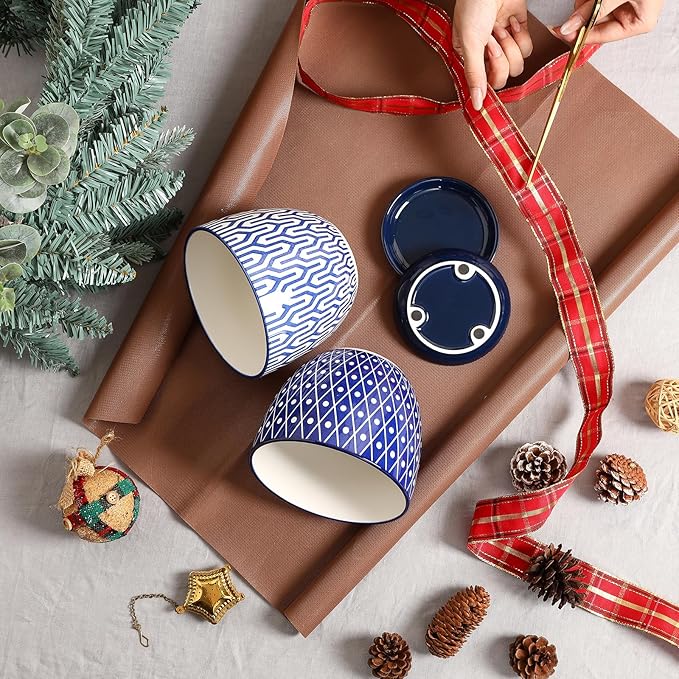 Selamica Ceramic Plant Pots, 5.6 Inch Flower Pots for Indoor Plants, Planters with Drainage Hole and Saucer, Garden Pots for Succulent, Orchid, Home Decor, Set of 4, Vintage Blue