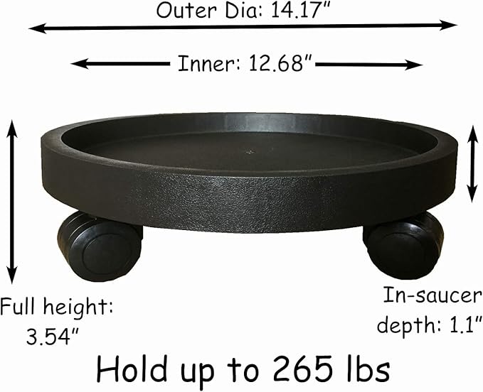 - [Indoor & Outdoor Practical Use]: It's designed to run on patios, wooden floors for outdoors. Also the caddy rolls smoothly over hardwood, concrete, and even carpet, which is perfect for indoor use. Not only suitable for plant pots, but also for anything in your home that needs to be moved, such as an umbrella, humidifier. Three available colors and sizes to perfectly match your home decor or garden.