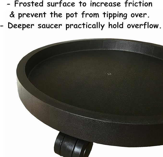 - [Non-slip & Easy to Clean Surface]: The surface of the tray is frosted to increase friction with the bottom of the planter, ensuring that the planter will not topple over during movement. The internal height of the saucer is 1inch deep enough, so it can practically catch and hold overflow. There are no drain holes on the surface, fortunately you can drill your own holes if needed.