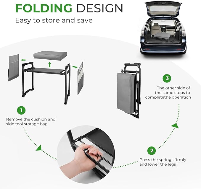 - 【Heavy Duty & Portable】Built with a high-strength steel frame, this heavy duty garden stool supports up to 350 lbs. Its foldable design makes it easy to store and transport.