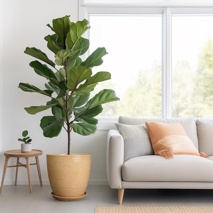 - Package Include: 12 inch ceramic planters for indoor plants (12”D x11.5”D)×1, removable ceramic tray×1, 9cm drainage net×1, plants not included