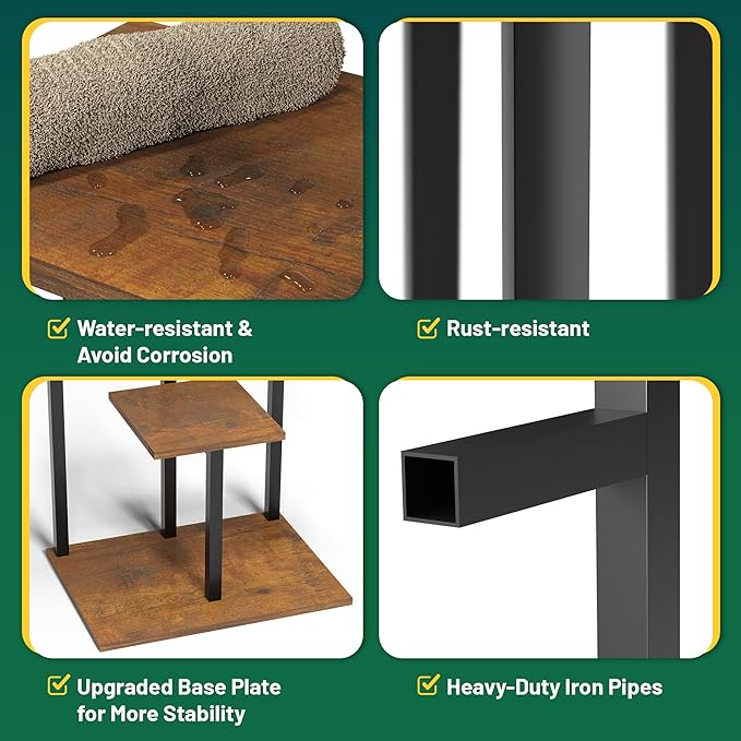 - 【Stable and Sturdy】This metal plant stand is made of heavy-duty iron pipes and thickened particleboard, with a sturdy structure, strong load-bearing capacity and long-lasting durability. The surface of the iron pipe is coated with a special paint to avoid rust. The particleboard is crack-resistant and coated with a waterproof layer to avoid corrosion, warping and curling caused by residual water.