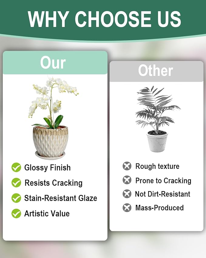 - 【Drainage Hole and Saucer】This 7.5 inch ceramic orchid pot includes a built-in drainage hole and fixed saucer. It helps manage excess water and supports better growing conditions for orchids and indoor plants