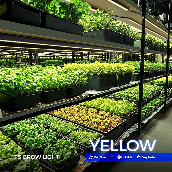 Barrina T5 Grow Lights for Indoor Plants, 4FT 160W (8 X 20W) Plant Grow Lights Indoor with Magnetic Bar, Linkable Plant Growing Lamps with Black Cover, Plug and Play, Yellow, 8 Packs
