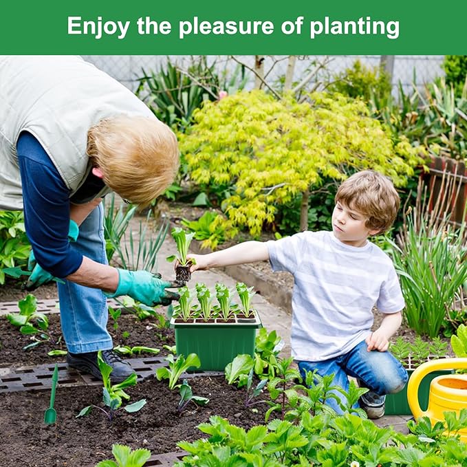 - 【Sturdy and Reusable Seed Trays】Made of high-quality PVC material, these seed starter trays are durable and eco-friendly, designed for repeated use. Each compartment has drainage holes to prevent water accumulation, protecting plant roots from rotting. The raised dome cover offers ample room for flowers, vegetables, and herbs to thrive, making this kit ideal for small seeds and cuttings alike.
