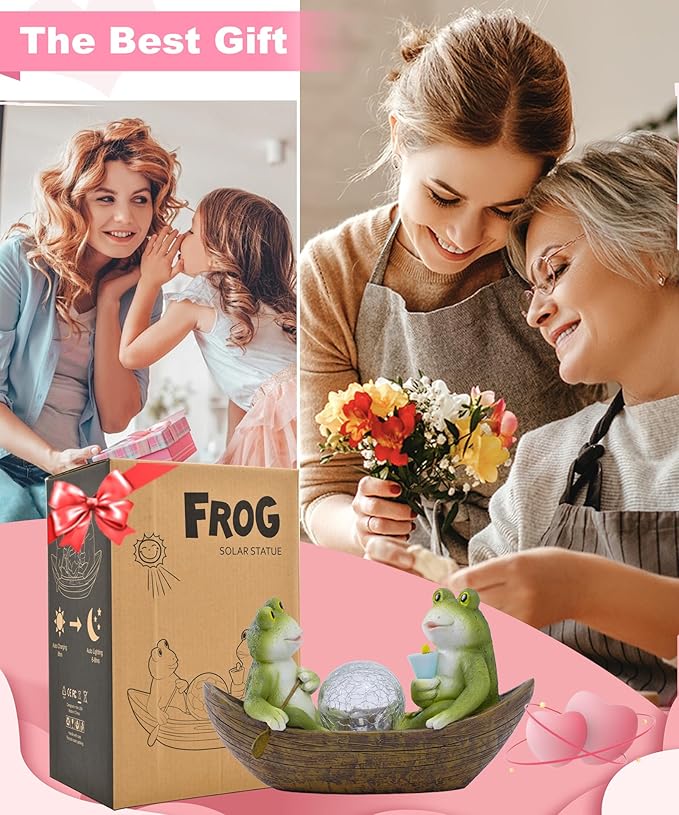 Solar Frogs Boating Statue Garden Decor: Outdoor Sculpture Lights Decorations Art Ornament Yard Lawn Backyard - Ideal Gifts for Women Mom Grandma