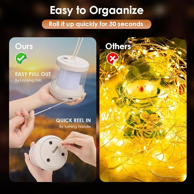- Multifunctional Camping String Lights: 2-in-1 camping string lights is a camping equipment that integrates lighting and atmosphere creation, which can greatly improve the comfort and fun of outdoor activities. It can be used as an ordinary lighting lamp or can be turned into a string light through simple operation for Christmas trees, home decoration, tent decoration, birthday and holiday decoration, creating a warm and romantic atmosphere.