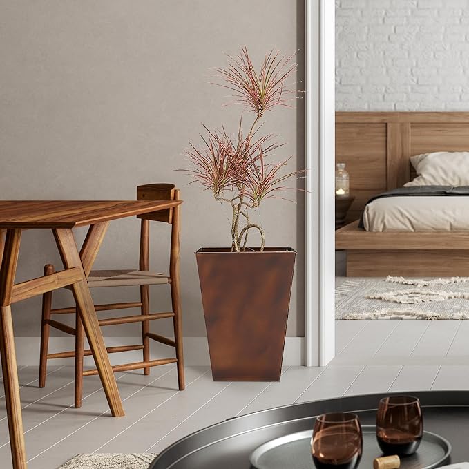 - Stylish Design: WORTH 18" tall square tapered planters feature a matte bronze retro finish; The sleek, retro design seamlessly complements any decor style, making these planters a stylish addition to your home or garden.